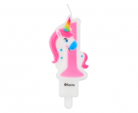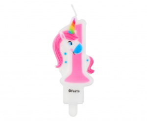 Świeczka cyferka 1, z Jednorożcem, 7,8 cm