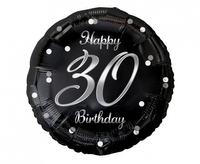 Balon foliowy B&C Happy 30 Birthday, czarny, nadruk srebrny, 18"