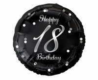 Balon foliowy B&C Happy 18 Birthday, czarny, nadruk srebrny, 18"