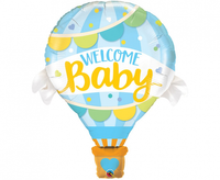 Balon foliowy 42 cale/106 cm QL Balon z Koszem "Welcome Baby", niebieski