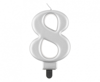 Świeczka B&C cyferka 8, metalik srebrna, 8,0 cm