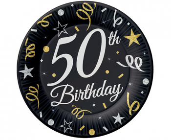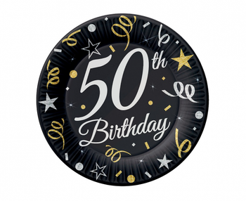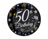 Talerzyki papierowe B&C 50 Birthday, 18 cm/ 8 szt.