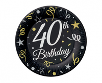 Talerzyki papierowe B&C 40 Birthday, 18 cm/ 8 szt.