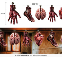 - Wisiorki, lampiony, dekoracyjne girlandy i flagi w motywach duchów, czarownic, dyni i innych symboli halloweenowych.