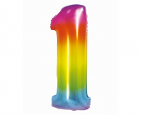 Balon foliowy B&C Cyfra stojąca 1, tęczowa, 74 cm