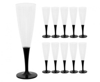 Kieliszek do szampana, wielokrotnego użytku, czarna nóżka, 10 szt.