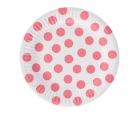 Talerzyki pap. Groszki, różowe, 18 cm, 6 szt.