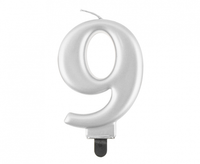 Świeczka B&C cyferka 9, metalik srebrna, 8,0 cm