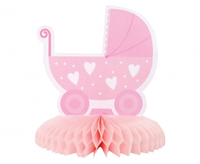 Dekoracja papierowa B&G na stół Baby Girl - wózek, jasnoróżowa, 16 cm