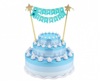 Dekoracja papierowa B&G na tort Happy Birthday, jasnoniebieska, 25 cm