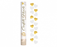 Konfetti pneumatyczne Złote i białe serduszka (foliowe i papierowe) / 40 cm