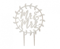 Dekoracja na tort topper Mr&Mrs Beautiful Botanics, drewniany, 14x20 cm