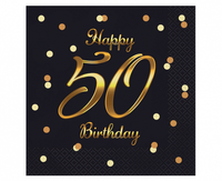 Serwetki B&C Happy 50 Birthday, czarne, nadruk złoty, 33x33 cm/ 20 szt.