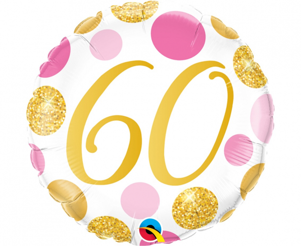 - BALON FOLIOWY 60 URODZINY RÓŻOWO-ZŁOTE GROCHY
