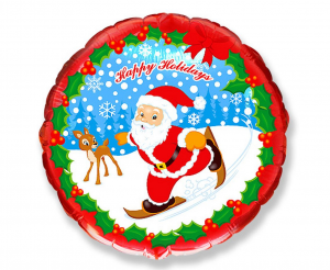 Balon foliowy 18" FX - "Mikołaj na nartach" (okrągły), pakowany