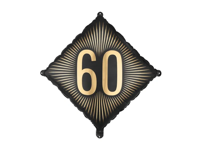 • Balon foliowy w kolorze czarnym ze złotym napisem ''60''. Wymiary przed napompowaniem ok. 54 x 54 cm (20 x 20''), wymiary po napompowaniu ok. 46 x 46 cm (18 x 18''). Do napompowania powietrzem i helem. Zestaw zawiera słomkę.