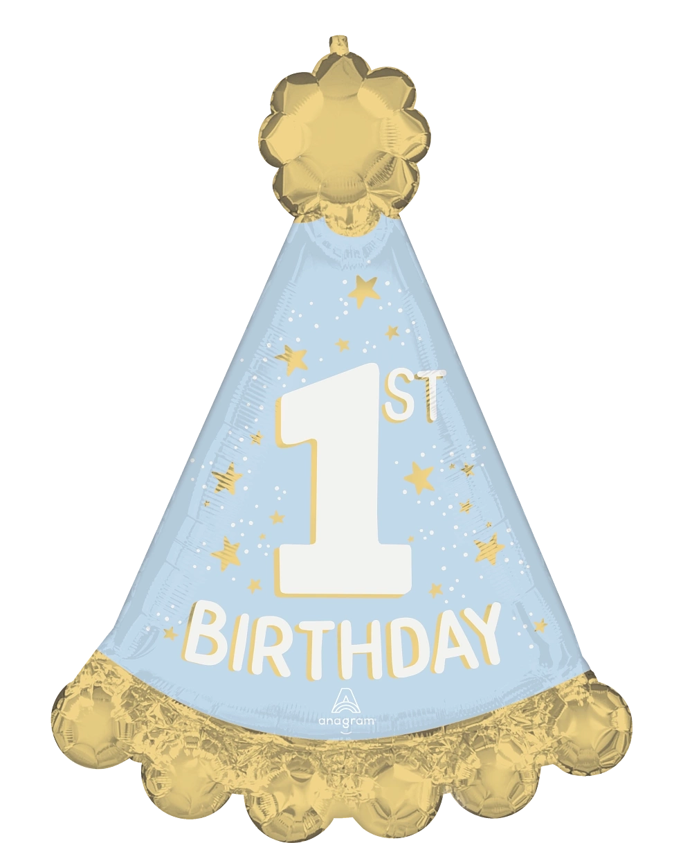 - Balon foliowy w kształcie uroczej urodzinowej czapeczki na roczek chłopca