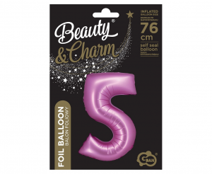 Balon foliowy B&C, Cyfra 5, satynowa różowa, 76 cm