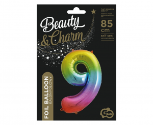Balon foliowy B&C Cyfra 9, tęczowa, 85 cm