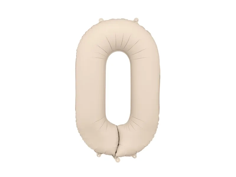 - Balon foliowy matowy Cyfra 0 w kolorze jasnobeżowym, rozmiar przed napompowaniem ok. 100 cm (39''), rozmiar po napompowaniu ok. 86 cm (34'').