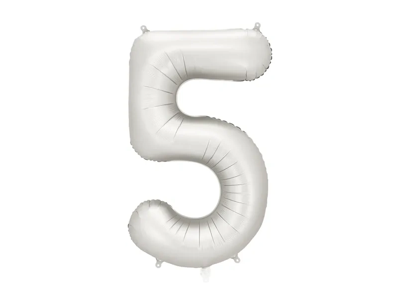 - Balon foliowy Cyfra ''5'' w kolorze srebrnym z satynowym wykończeniem, rozmiar przed napompowaniem ok. 100 cm (39''), rozmiar po napompowaniu ok. 86 cm (34''). Do napompowania powietrzem i helem. Zestaw zawiera słomkę.