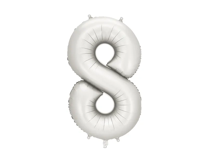 • Balon foliowy Cyfra ''8' w kolorze srebrnym z satynowym wykończeniem, rozmiar przed napompowaniem ok. 100 cm (39''), rozmiar po napompowaniu ok. 86 cm (34''). Do napompowania powietrzem i helem. Zestaw zawiera słomkę.