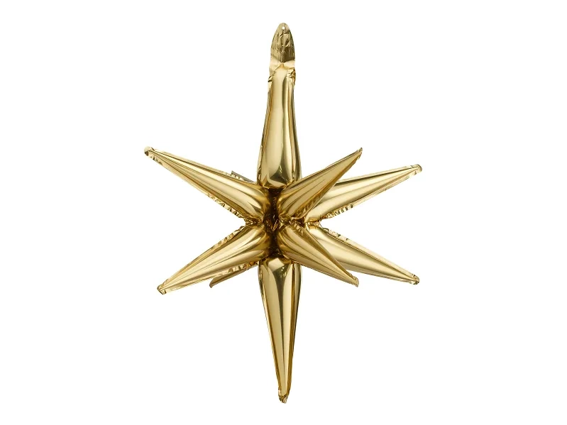 - Balon foliowy matowy Gwiazda 3D w kolorze złotym, rozmiar przed napompowaniem ok. 90 x 120 cm (35 x 47''), rozmiar po napompowaniu ok. 105 cm (41'').