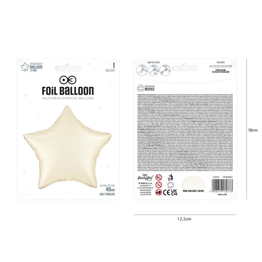 Dodaj wyjątkowego uroku każdej okazji dzięki matowemu balonowi foliowemu w kształcie gwiazdy w eleganckim kremowym kolorze! Idealny na urodziny, wesela, baby shower, komunie czy inne uroczystości, które wymagają subtelnego, ale efektownego wystroju.