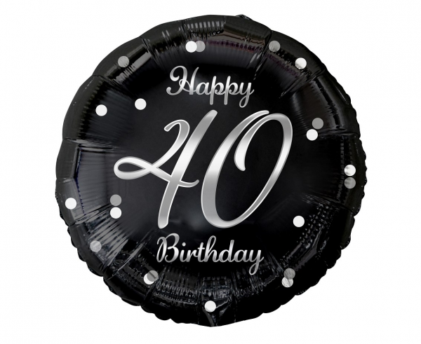 Balon foliowy Happy 40 Birthday, czarny, nadruk srebrny, 18"