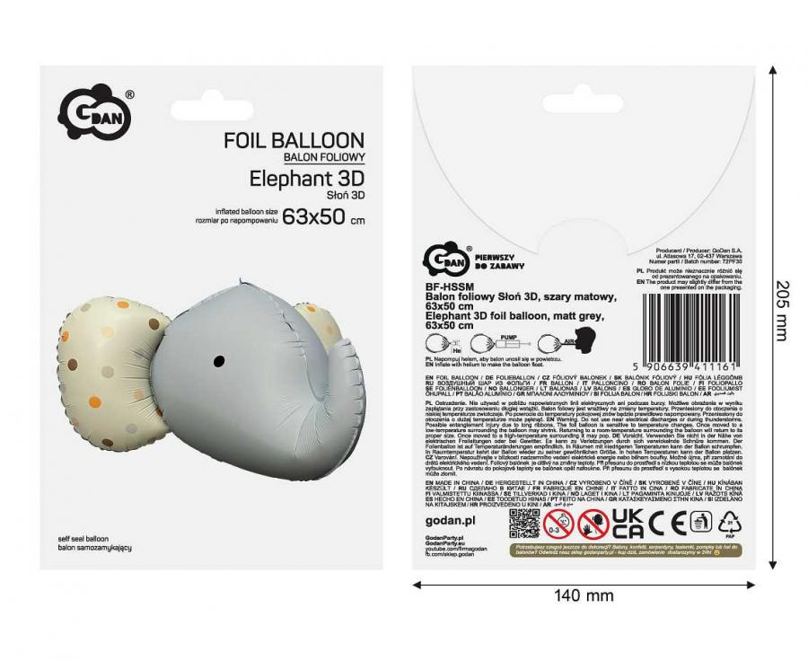 - BALON FOLIOWY SŁOŃ, SZARY MATOWY