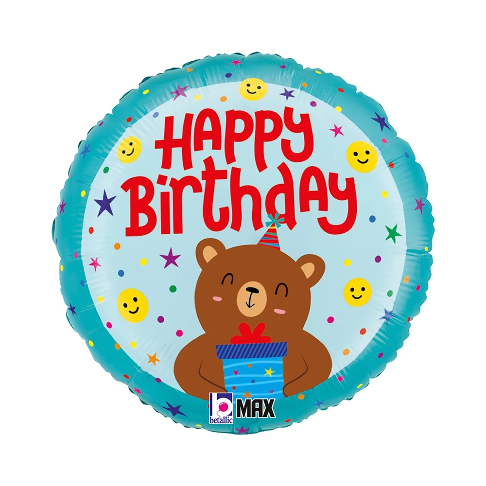 - Balon foliowy z nadrukiem urodzinowego Misia