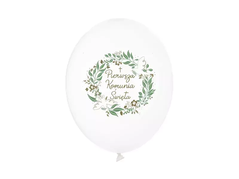- Balony Strong ''Pierwsza Komunia Święta'', zestaw zawiera 6 balonów w kolorze Pastel White z kolorowym dwustronnym nadrukiem, średnica ok. 30 cm.