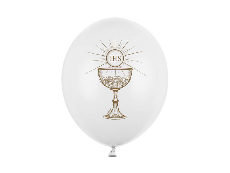 - Balony Strong IHS w kolorze Pastel Pure White z dwustronnym, złotym nadrukiem,