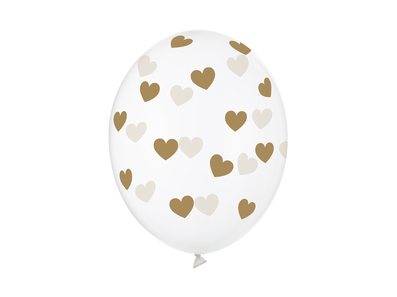 - Balony Strong Serduszka w kolorze Crystal Clear, ze złotym, pięciostronnym nadrukiem, średnica 30 centymetrów.