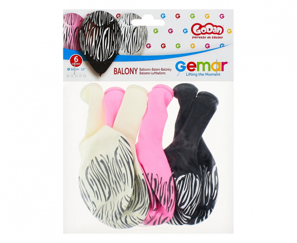 • W opakowaniu znajduje sie 6 balonów z paskami zebry.