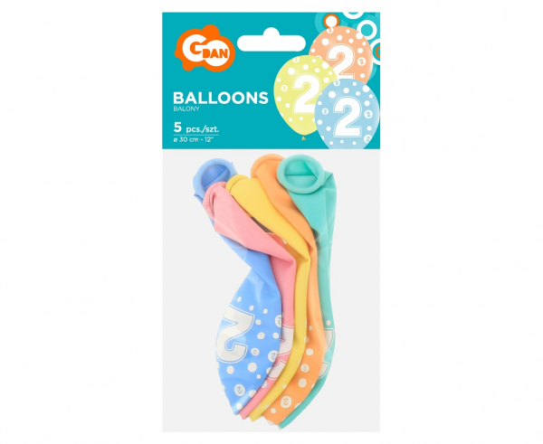 - BALONY CYFRA 2, NA DRUGIE URODZINY, 30 CM - 5 SZT.