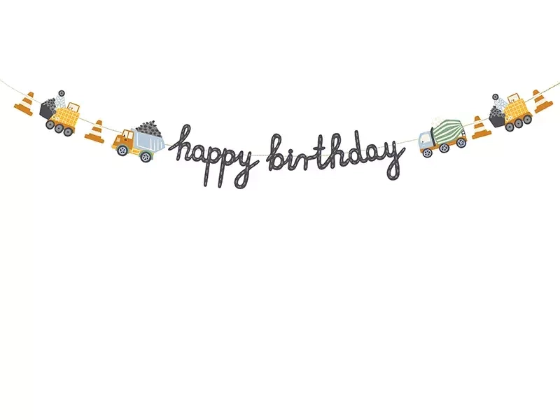- Baner Pojazdy budowlane z napisem ''Happy birthday'' wykonany z papieru, mix kolorów.