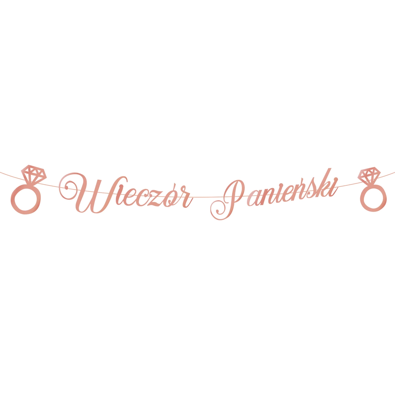 Papierowy napis Wieczór Panieński z 2 pierścionkami