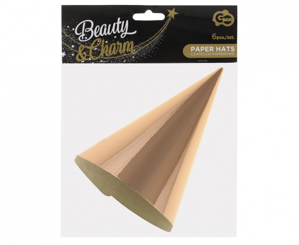 - PAPIEROWE CZAPECZKI RÓŻOWO-ZŁOTE, B&C - 6 SZTUK