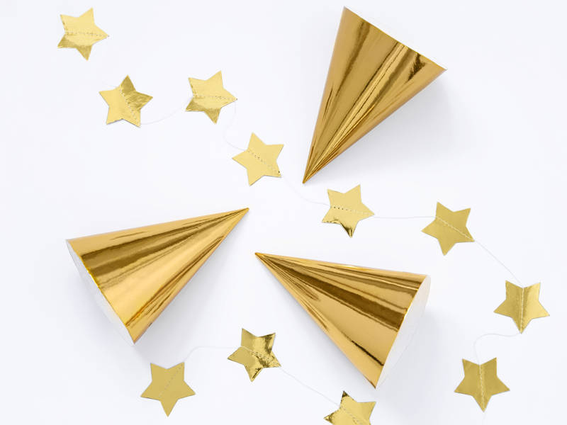 • Czapeczki wykonane z papieru w kolorze złotym,