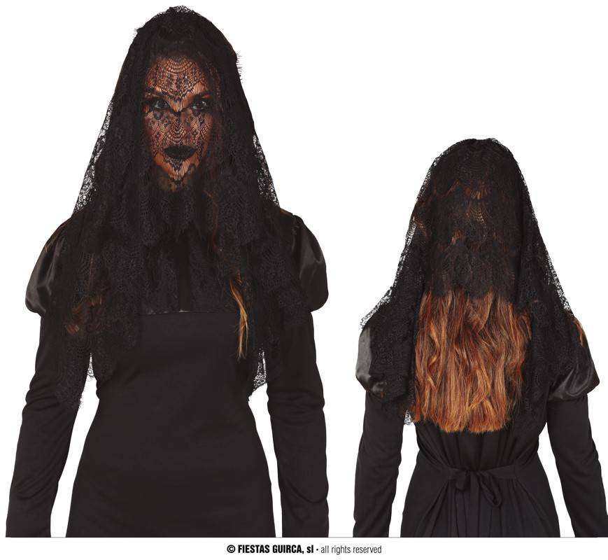 - Welon wykonany z koronkowego materiału w kolorze czarnym.