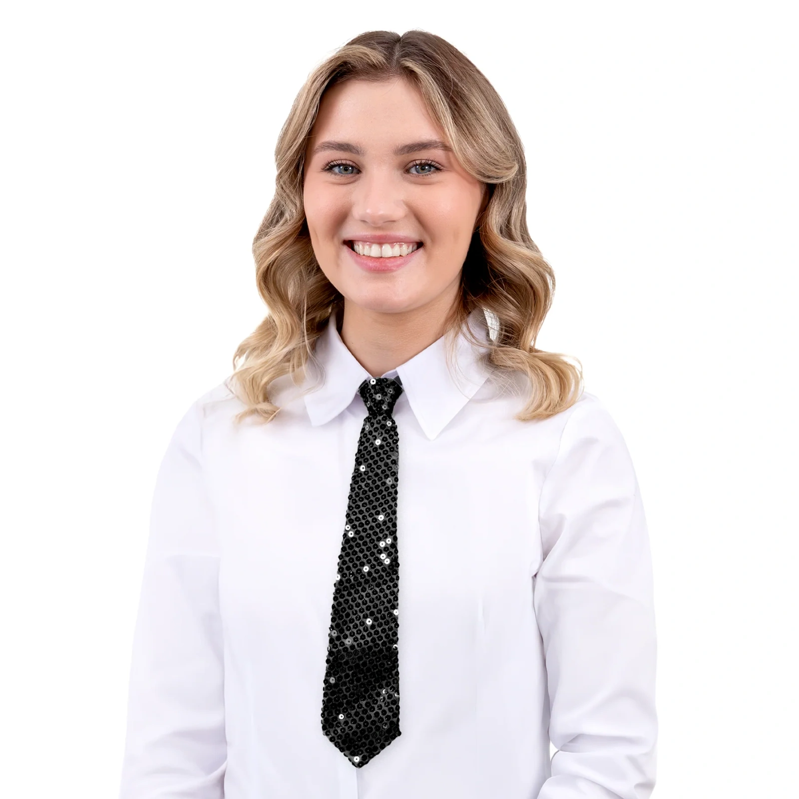Czarny krawat z cekinami na imprezy, występy i wieczorne wyjścia