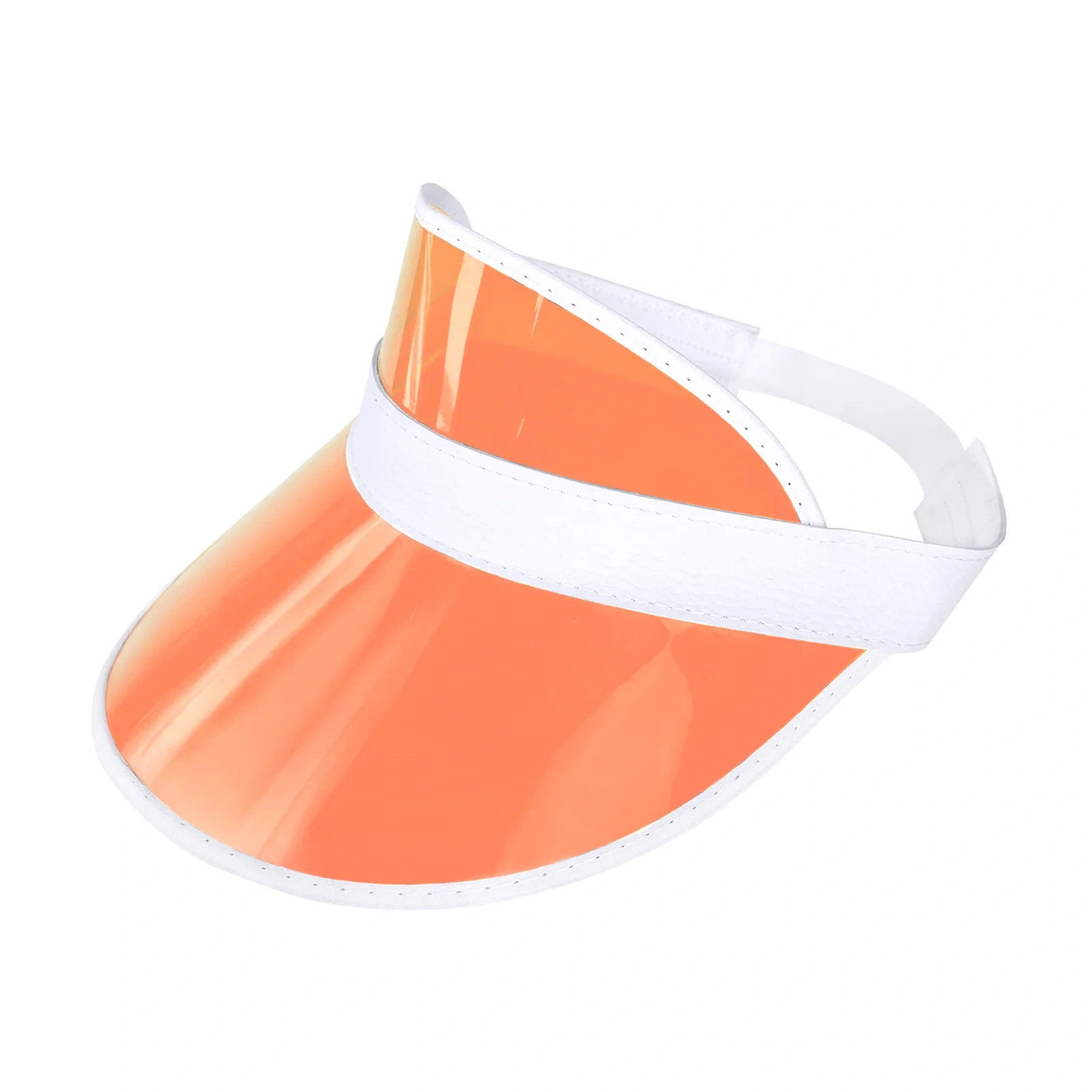 Przezroczysty, pomarańczowy daszek natychmiast przyciąga wzrok, nadając każdej stylizacji charakteru „retro fitness” lub „beach party”. Połączenie intensywnej barwy daszka z białą lamówką i opaską tworzy świeży, dynamiczny kontrast, który świetnie komponuje się z kolorowymi dresami, strojami kąpielowymi czy codziennymi outfitami streetwear.