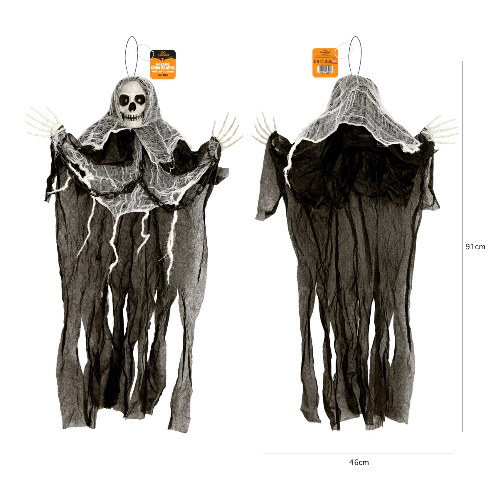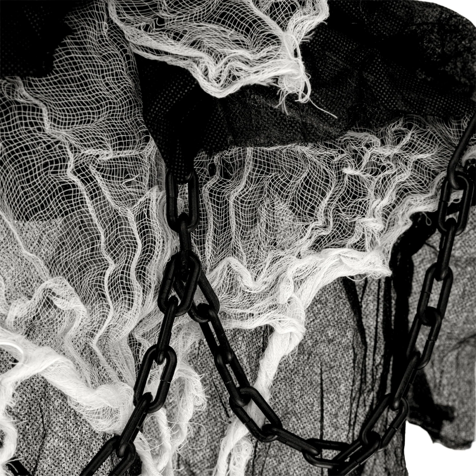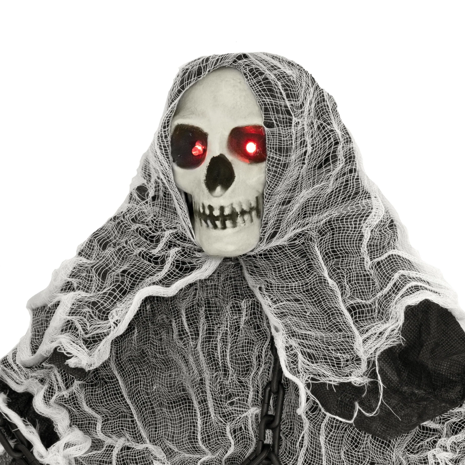 Dekoracja wisząca Kościotrup z łańcuchem oraz z efektem dźwiękowym i świetlnym. Wprowadzi prawdziwie mroczną atmosferę na Halloween!