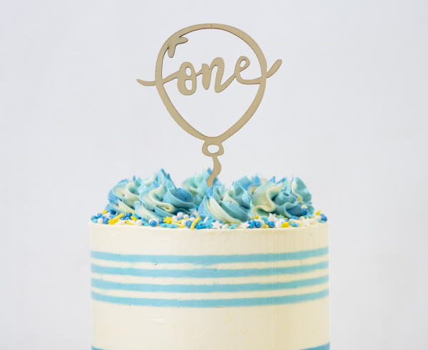 - Topper na tort w kształcie balonika z napisem ONE
