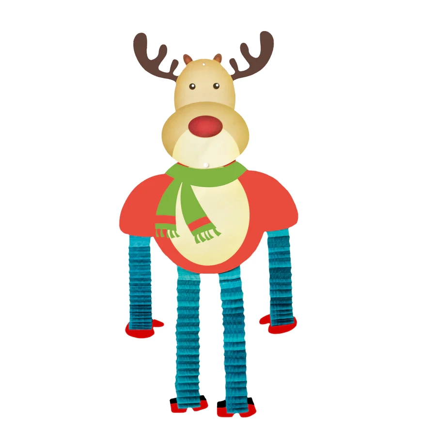 Nogi i ręce renifera są rozwijane, wykonane z bibuły ułożonej w harmonijkę