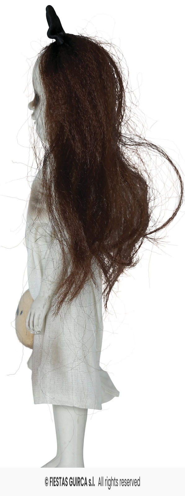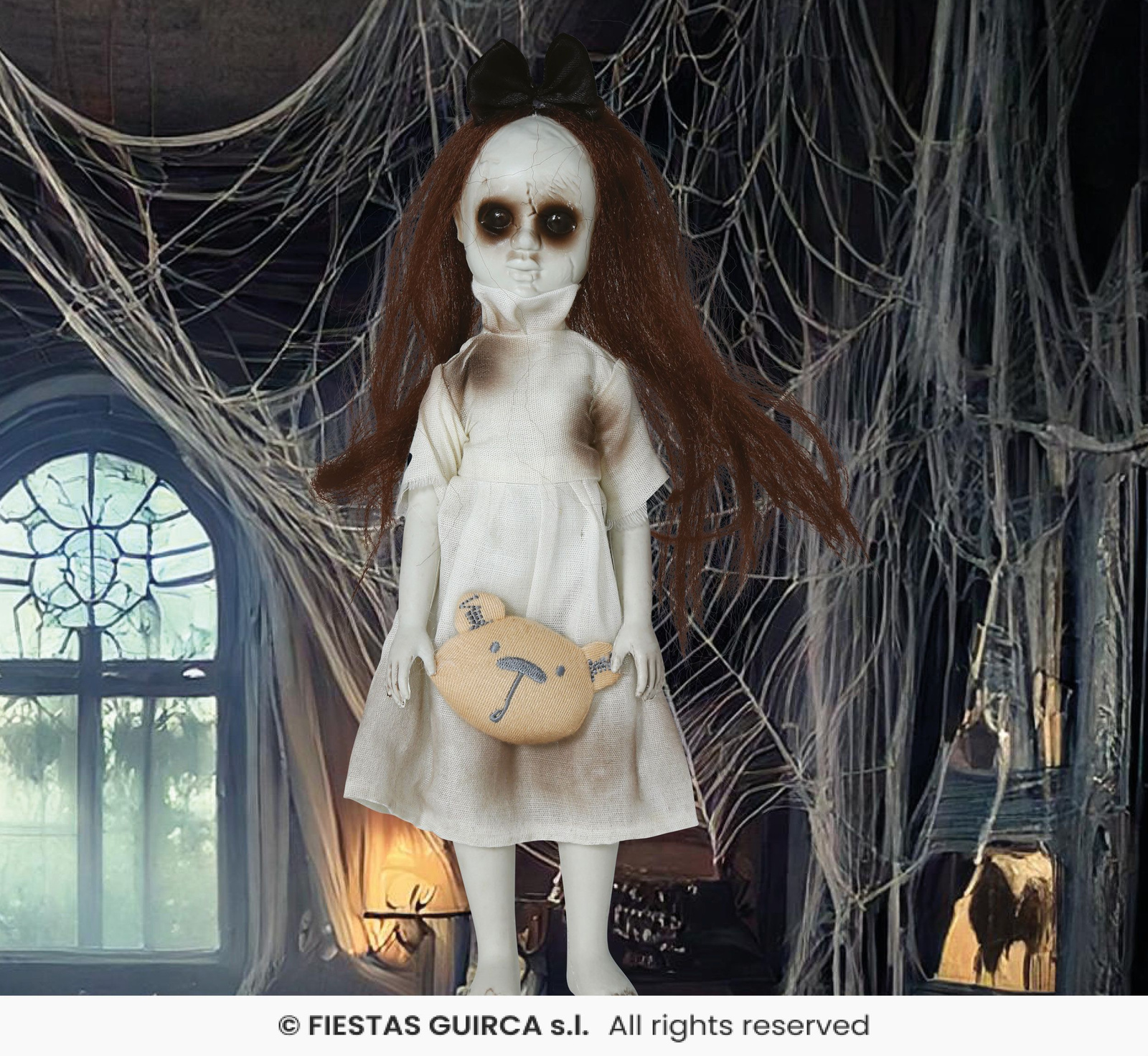 - Dekoracja wisząca na Halloween w postaci strasznej dziewczynki z pluszakiem