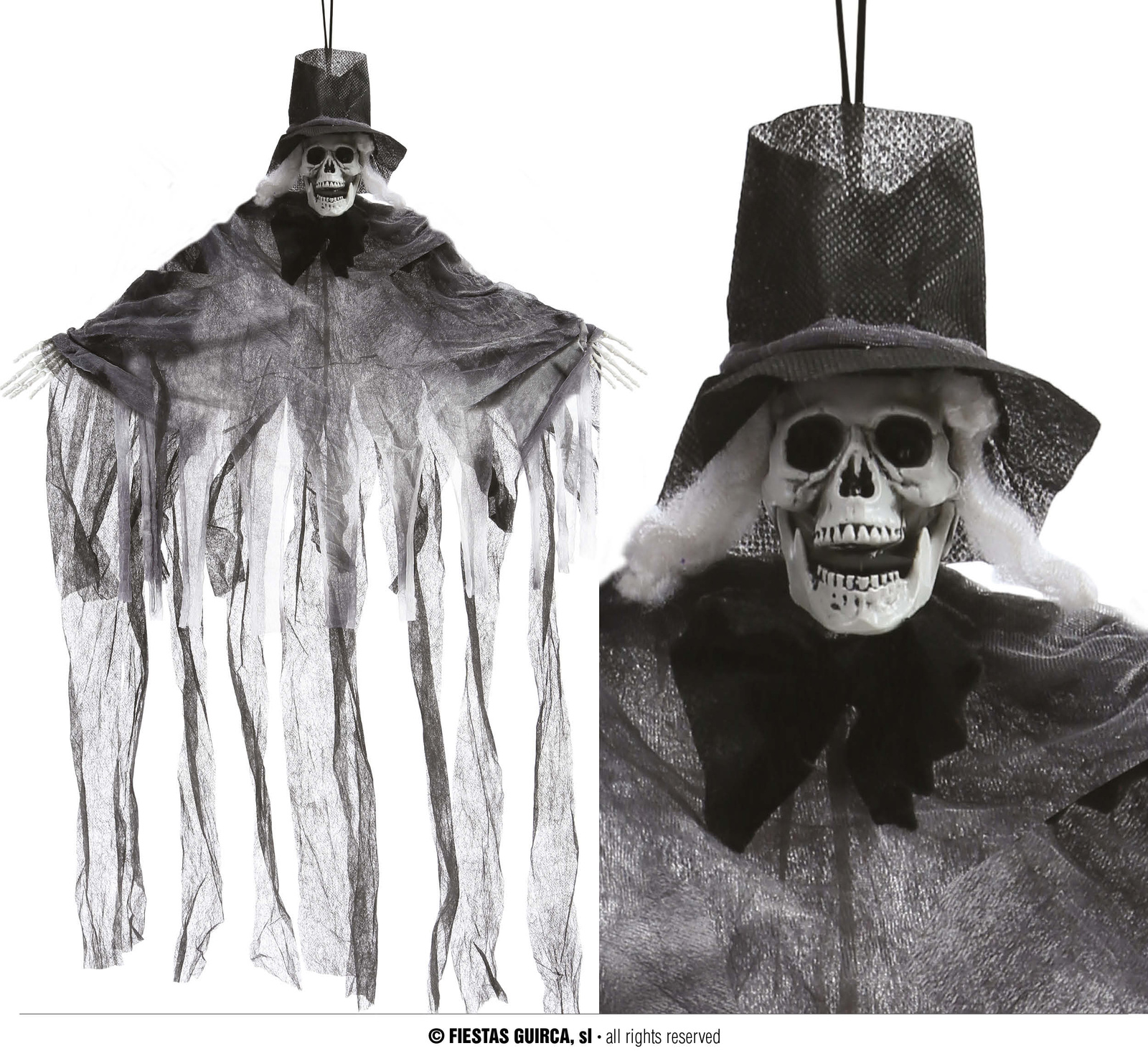 - Dekoracja wisząca na Halloween w postaci szkieleta w cylindrze