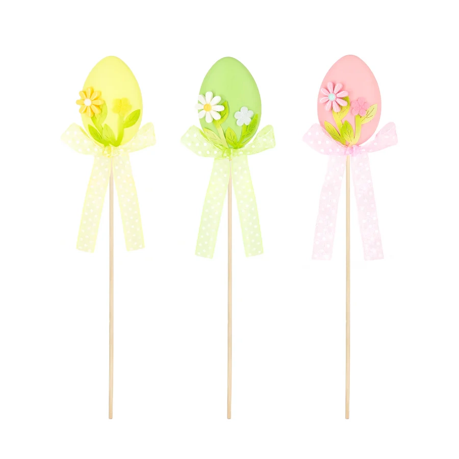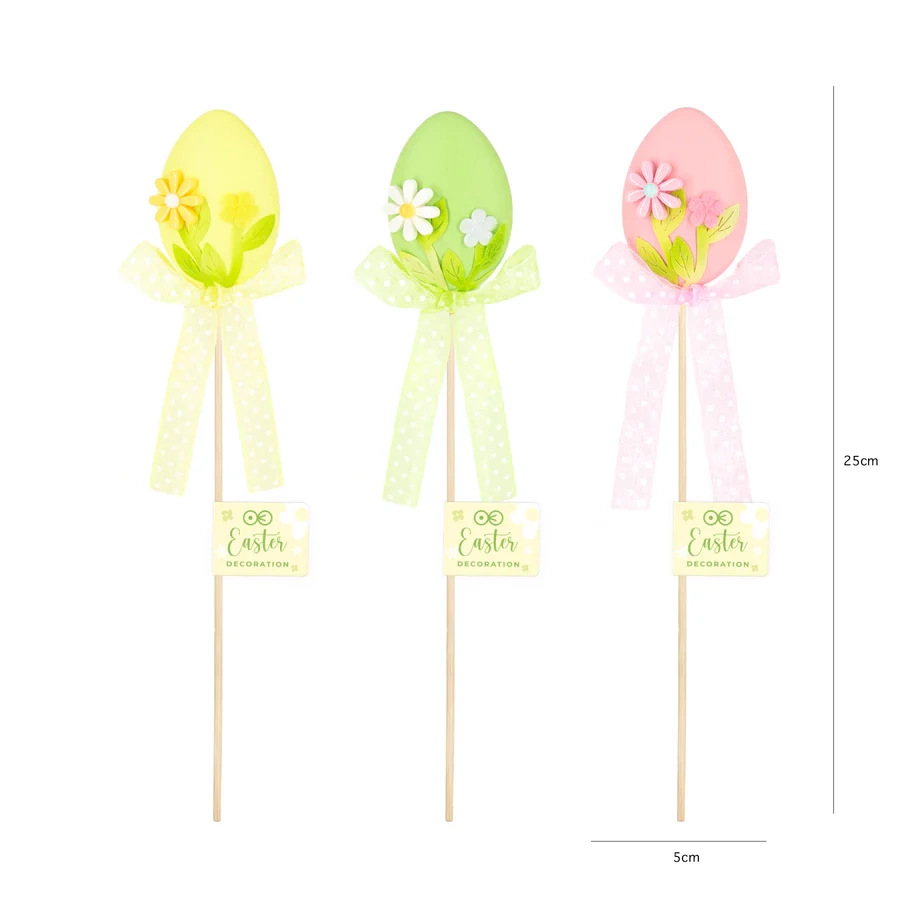 Dekoracje wielkanocne Jajka kokardki i kwiatki na patyku mix kolorów 1 szt