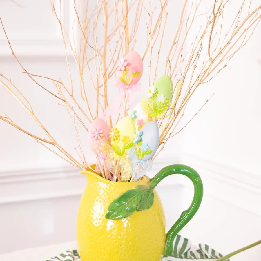 Dekoracje wielkanocne Jajka kokardki i kwiatki na patyku